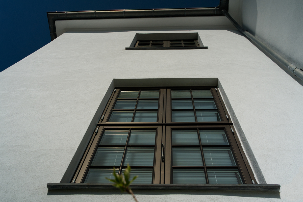 Eksisterende bindingsværk rykket med ud i facade og tagsten i gavle ligeledes rykket med frem på facaden for at tilpasse til den øgede vægtykkelse grundet efterisolering.